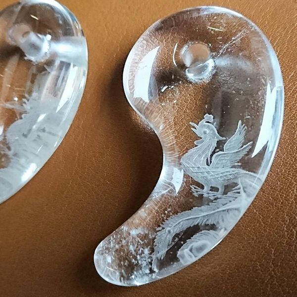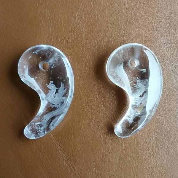 ビーズ アクセサリー用品 アクセサリー道具 材料 手芸 ハンドクラフト コレクション 勾玉 天然水晶 特大 鳳凰 浅彫り 天然水晶の勾玉 日本古来より伝わる 装身具 魔除け 邪気祓いの役割 天然石使用 水晶独特の模様 色の濃淡 全て手彫り 1つとして同じものなし 唯一無二 手作業生産 大きさ全て多少異なる 【3024-7976542】