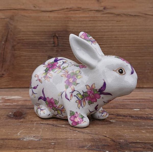 オブジェ 置き物 インテリア雑貨 家具 インテリア シノワズリ 花柄うさぎのオーナメント 花柄うさぎ オーナメント Lサイズ シノワズリな雰囲気 小花柄 可愛らしい 陶器 ウサギのオーナメント ウサギ うさぎ 兎 【3024-9252566】