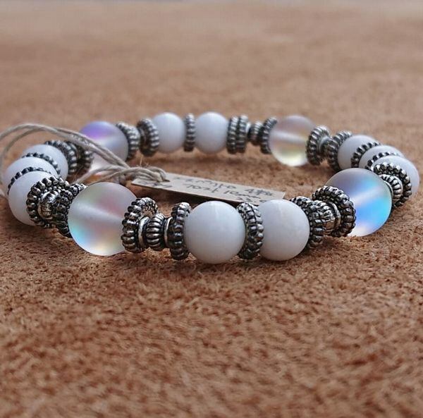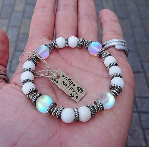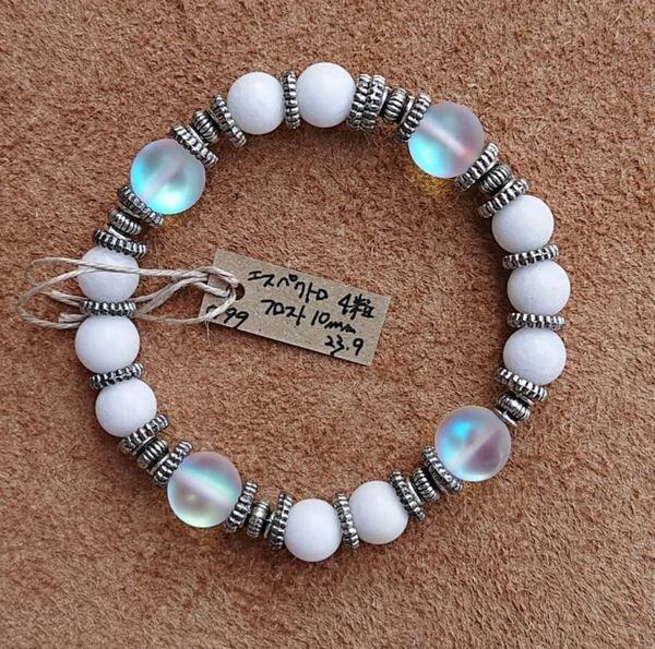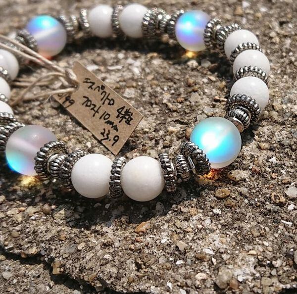 ブレスレット レディースアクセサリー アクセサリー ファッション エスペクトロ 特殊加工 偏光フィルム 挟み込み ガラスビーズ 光の反射 アクセント ホワイトオニキス メタルビーズ使用 【3024-9473682】
