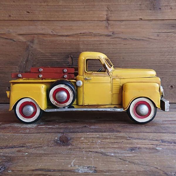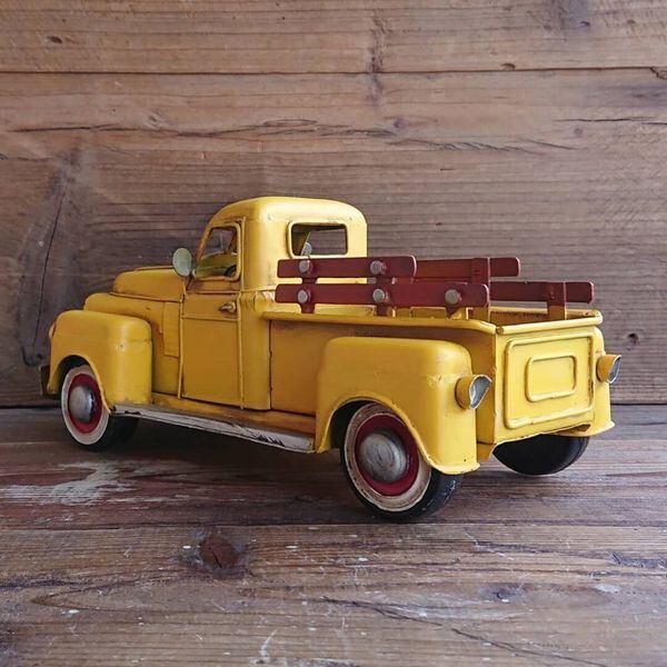 オブジェ 置き物 インテリア雑貨 家具 インテリア レトロな雰囲気 ブリキ細工 フォード トラック 黄色 アンティークの風合い かもしだす一品 細部にこだわり 精巧に作られた インテリアの雰囲気作り オススメ 昭和レトロ 【3024-9664132】