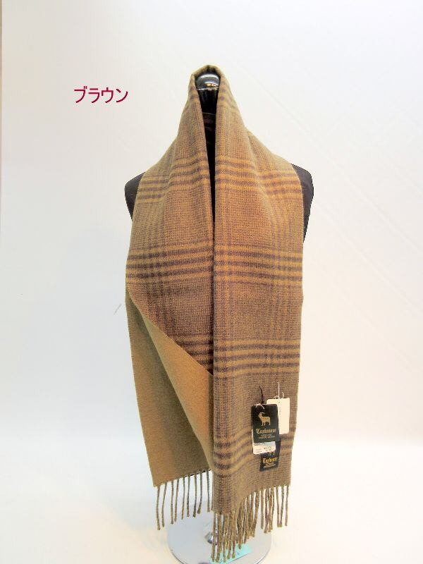 暖かいウールとカシミヤ入りのチェック&無地リバーシブルマフラーです。甲州(山梨県)で丹念に織上げられた日本製商品です。