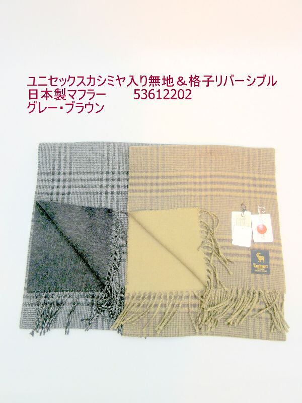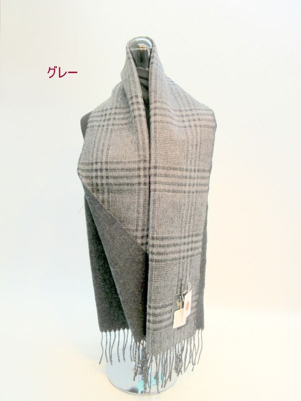 マフラー ファッション小物 レディースファッション ユニセックス カシミヤ入り 無地 格子 リバーシブル 日本製マフラー 暖かいウール 甲州 山梨県 丹念に織上げ 日本製 表チェック柄 裏シンプル 使い勝手抜群 秋冬のオシャレ 防寒 【3001-14055827】