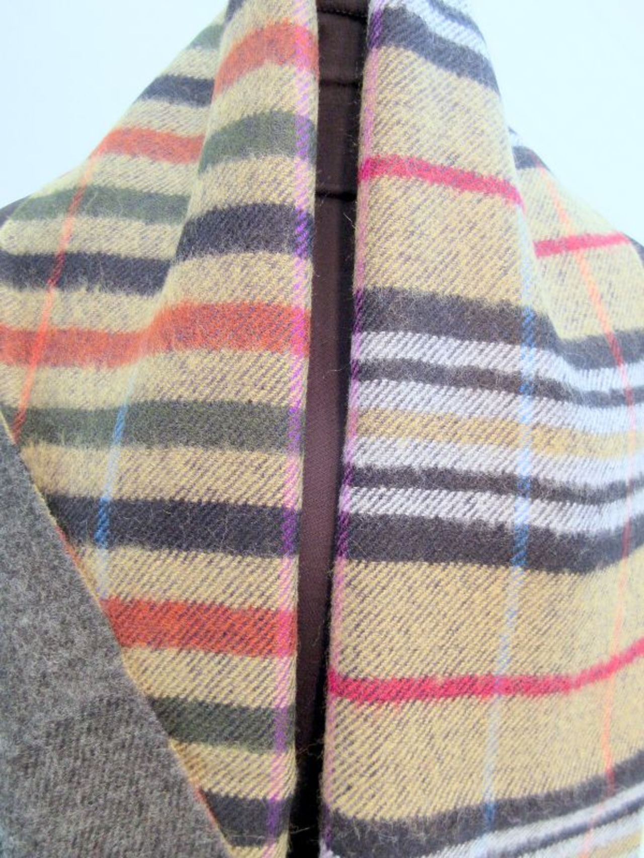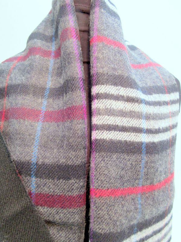 暖かいウール100%のチェック&ボーダー柄マフラーです。甲州(山梨県)で丹念に織上げられた日本製商品です。