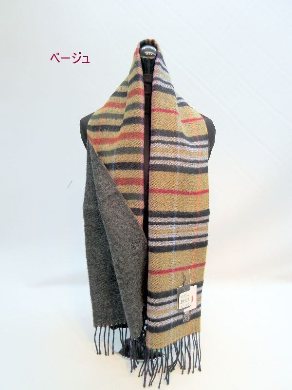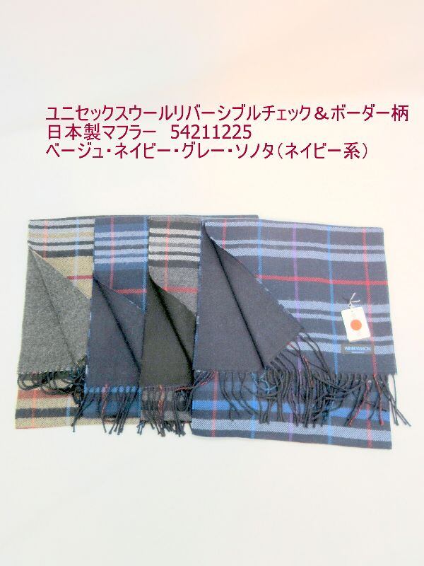 マフラー ファッション小物 レディースファッション ユニセックス ウール リバーシブル チェック ボーダー柄 日本製マフラー 暖かい 甲州 山梨県 丹念に織上げ 日本製 切り替え 裏面シンプル 無地 秋冬のオシャレ 防寒 【3001-14060236】