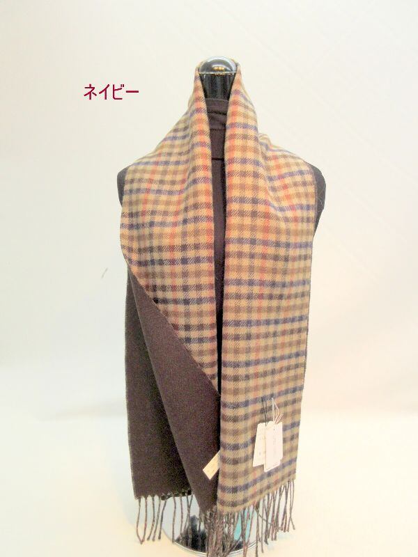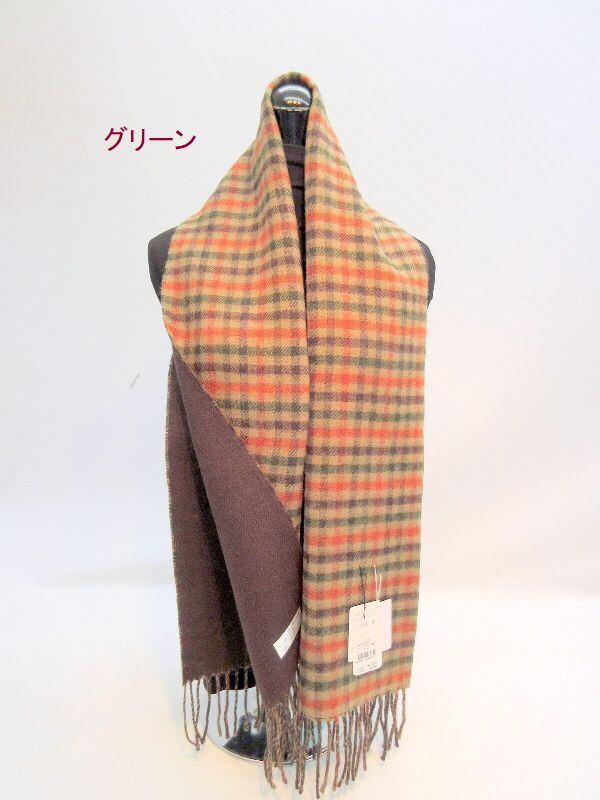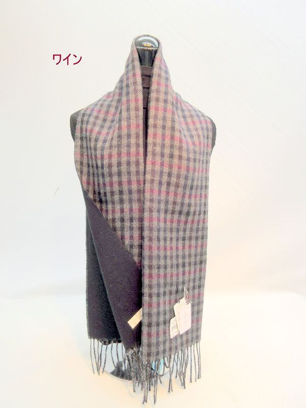 暖かいウール100%のユニセックスリバーシブルチェック柄マフラーです。甲州(山梨県)で丹念に織上げられた日本製商品です。