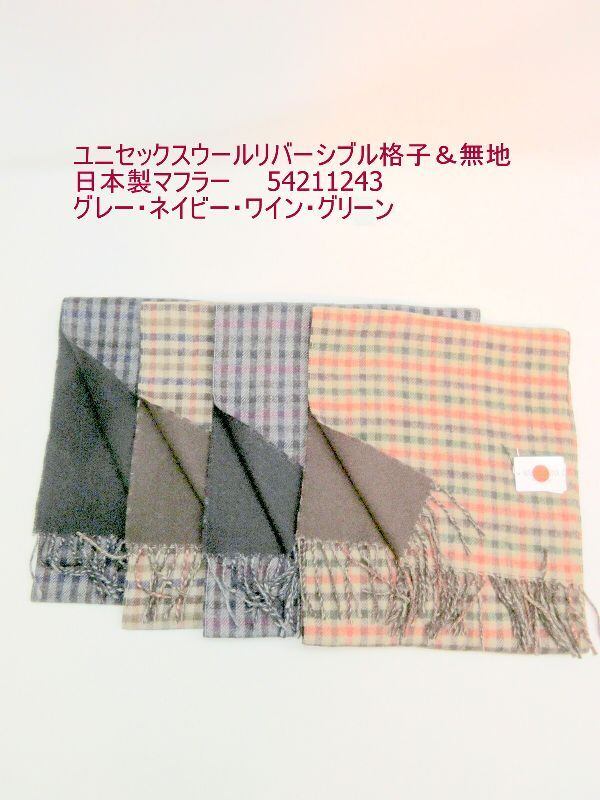 マフラー ファッション小物 レディースファッション ユニセックス ウール リバーシブル 格子 無地 日本製マフラー 暖かい チェック柄 甲州 山梨県 丹念に織上げ 日本製 表チェック柄 裏シンプル 使い勝手抜群 秋冬のオシャレ 防寒 【3001-14060237】