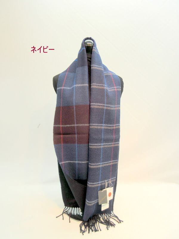 マフラー ファッション小物 レディースファッション ユニセックス ウール リバーシブル 格子 長尺 日本製マフラー 甲州 山梨県 機屋さん 丹念に織り上げ 長さ180cm 日本製 暖かい 安心の日本製 20cmから30cm 長め オシャレの幅ひろがる 表無地 異なるデザイン オシャレ 【3001-14060243】