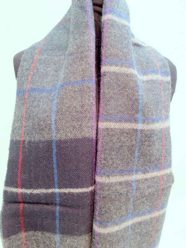 表無地・裏面格子のリバーシブルで、左右の格子が異なるデザインのオシャレな日本製長尺マフラーです。
