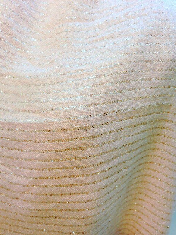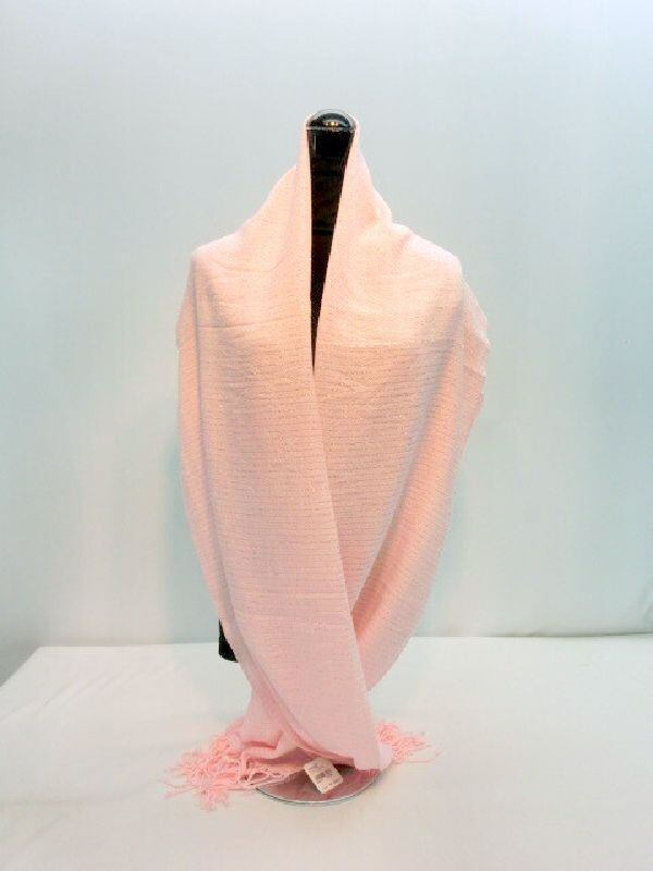 柔らかいアクリル無地ストールにボーダー状にラメ糸を入れ込みました。
