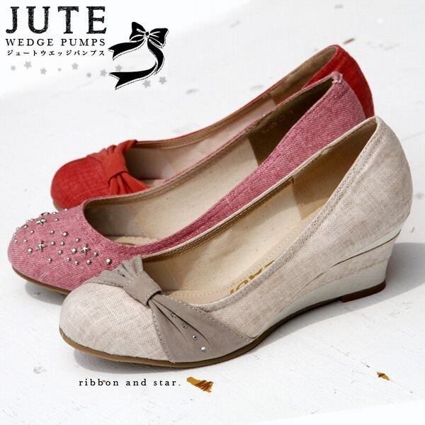 ウエッジヒールで脚長効果も! レディース ジュートウエッジパンプス
