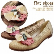 フラットシューズ レディースシューズ レディースファッション 靴 NICE CLAUP カジュアルパンプス 2WAY ぺたんこシューズ ビジューリボン 【1007-7510014020990】