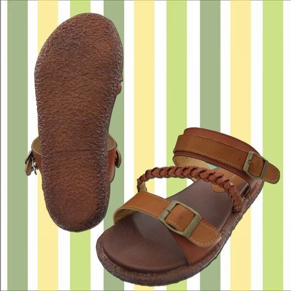 燻しの効いた金具使いがレトロでシックなサンダル。