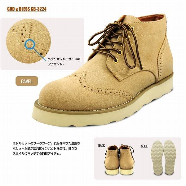 ワークブーツ ブーツ メンズシューズ 紳士靴 メンズファッション 靴 GOD&BLESS サイドジップ オックスフォード ウイングチップ 父の日 【1007-7510032240990】