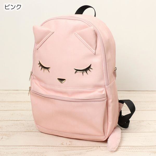 リュックサック デイパック レディースバッグ レディースファッション 猫 ネコ 猫好き ネコ好き プーちゃん 黒猫 しっぽ リュック おめめ 【3007-5476118】