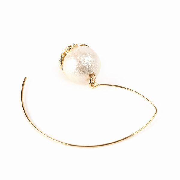ゆらゆら揺れる、コットンパール ワイヤーフックピアス