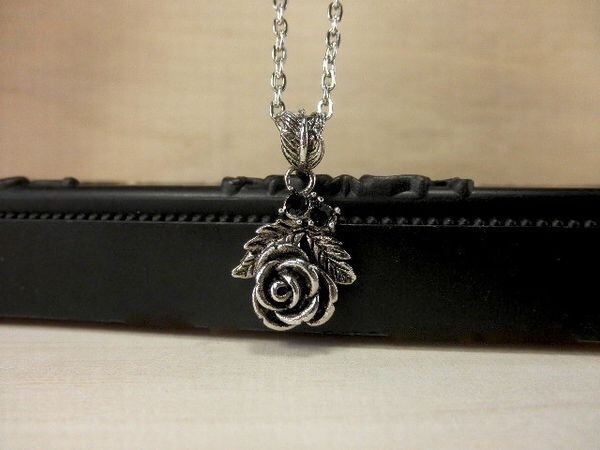 薔薇トップに葉をモチーフしたバチカンが付いたロック系にオススメなネックレスです♪