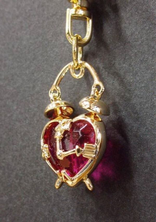 ふっくらしたアクリルハートが入った可愛い目覚まし時計モチーフのキーホルダーです♪