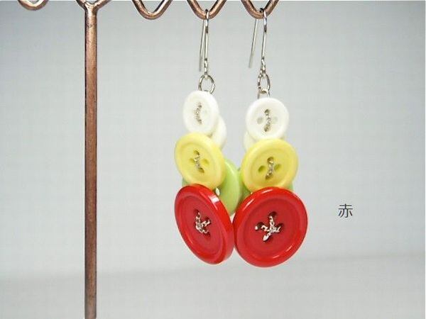 3サイズのカラフルボタンで作られたポップなフックピアスです♪