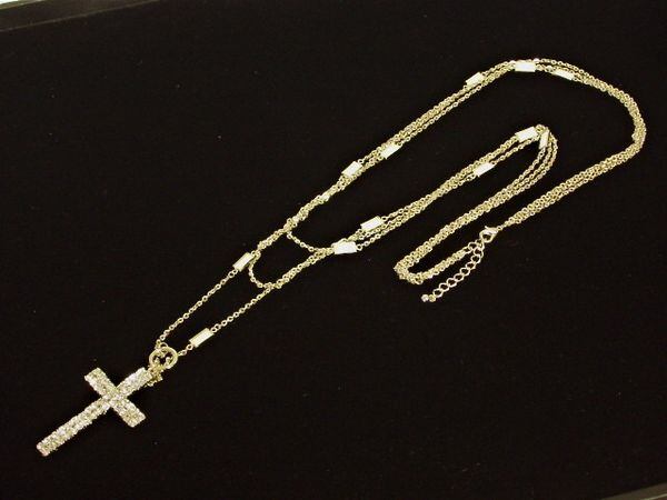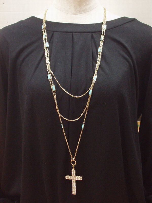 ネックレス ペンダント レディースアクセサリー アクセサリー ファッション 大きめ ラインストーン クロス カラーパーツ ボリューム 3連 【3011-3970021】