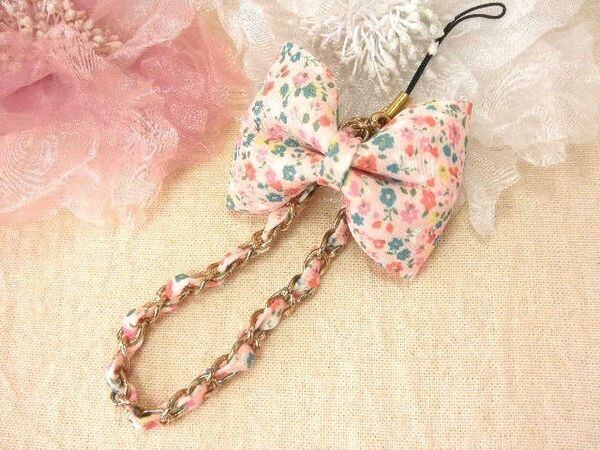 スマホストラップ スマホ タブレットアクセサリー 周辺機器 タブレット パソコン 携帯ストラップ 春夏 小花プリント りぼん 大きめリボン 【3011-2363579】