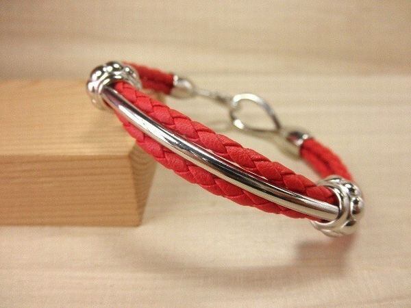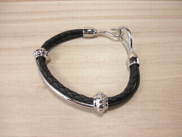 2本の編み紐とロウ紐で構成されたスタイリッシュなメタルパーツ付きブレスレットです♪