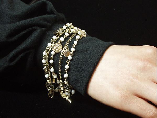 クロス、コインパーツがじゃらっと下がった5連ブレスレットです♪