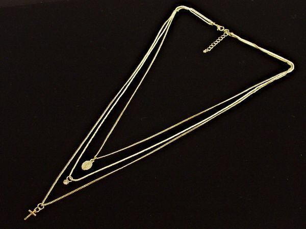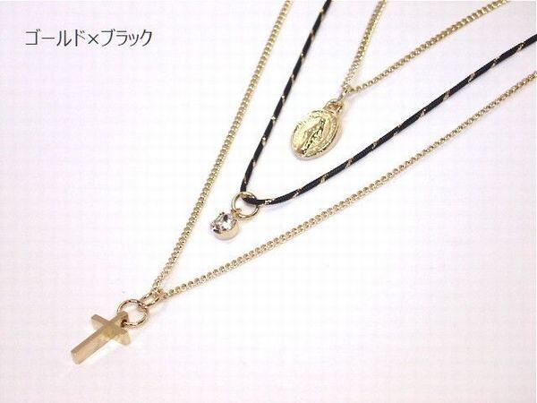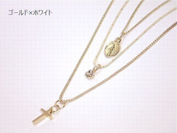 ネックレス ペンダント レディースアクセサリー アクセサリー ファッション クロス キリストメダル 3連 ロングネックレス カラーチェーン 【3011-3992819】