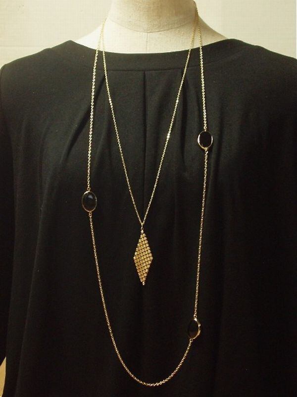 シェル風エポカラーのオーバルパーツがアクセントの2連ロングネックレスです♪