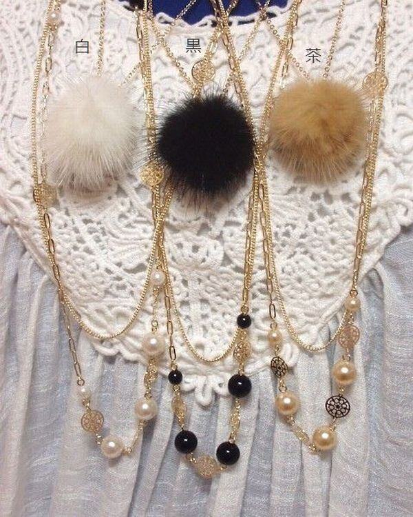 大きめなミンクがアクセントの新作3連ジャラネックレスです。
