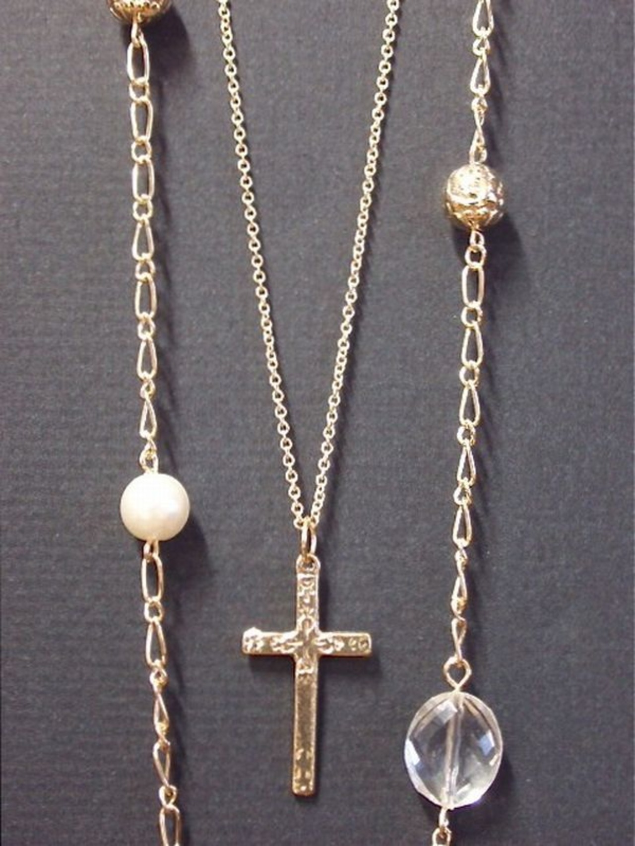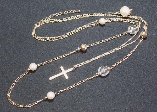 ネックレス ペンダント レディースアクセサリー アクセサリー ファッション クロス付 2連 じゃら クロス 印象的 ロング 【3011-1858120】