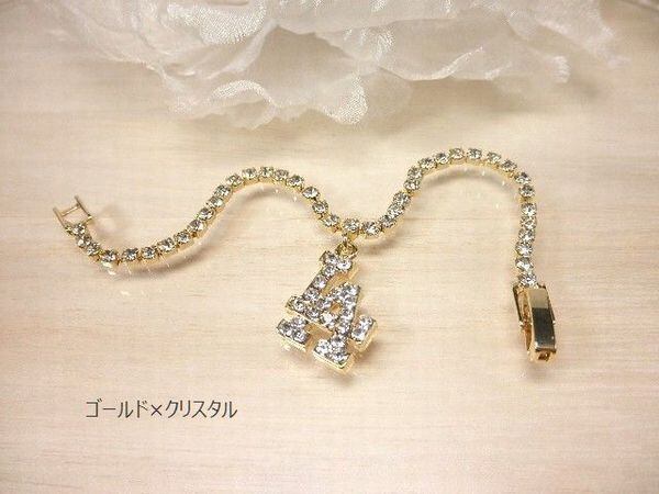 ストーンで飾ったLAモチーフを下げたプチゴージャスなラインストーン連爪ブレスレットです♪