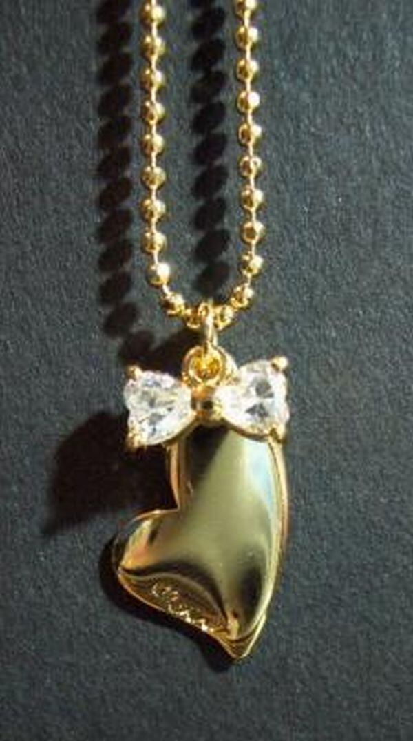 Loveの刻印が入ったハートプレートにジルコニアりぼんを合わせたキュートなネックレスです♪