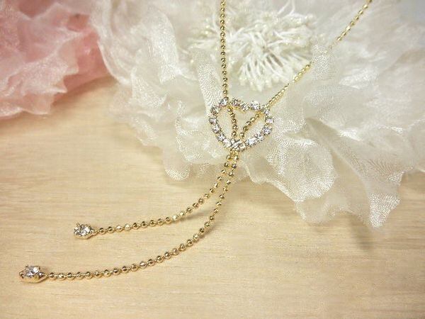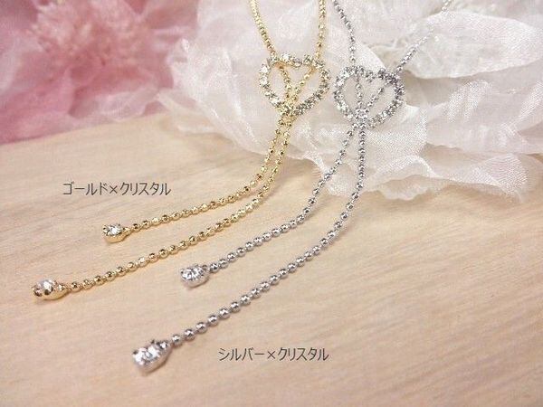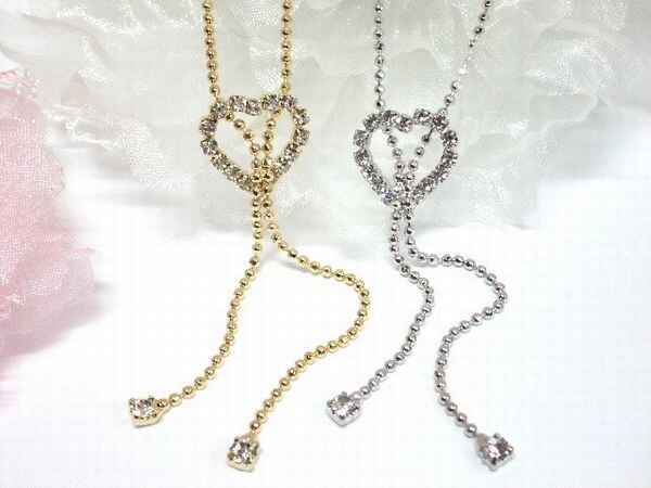 綺麗なフォルムで人気の連詰めクリアストーンハートのYスタイルネックレスです♪