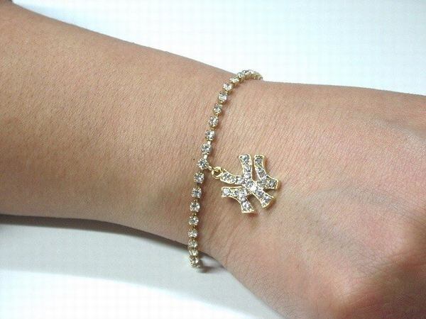 ラインストーンびっしりのNYモチーフが下がった連爪ブレスレットです♪
