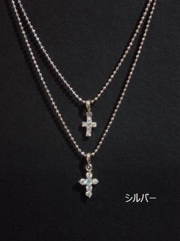 キュービックジルコニアクロスのWネックレスです。
