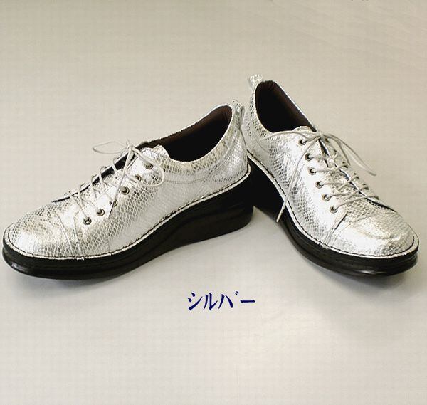 スニーカー レディースシューズ レディースファッション 靴 メタリック素材 ウォーキングシューズ 22.0 24.5 豚皮メタリックスネーク加工 【3012-6629382】