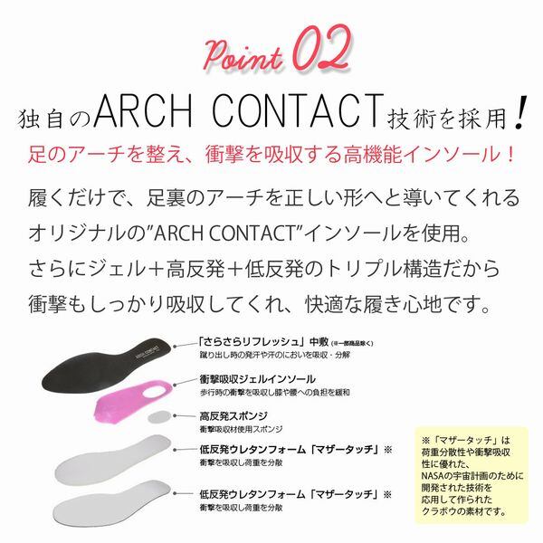 履き心地の良さに定評のあるアーチコンタクトを採用しているので、足裏を自然なアーチに導いてくれ、足裏にフィットして歩きやすい。