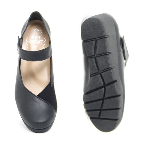 パンプス レディースシューズ レディースファッション 靴 日本製 ウエッジソール 甲ベルトつき コンフォート 外反母趾 伸縮性ある素材 黒 【3013-6482938】