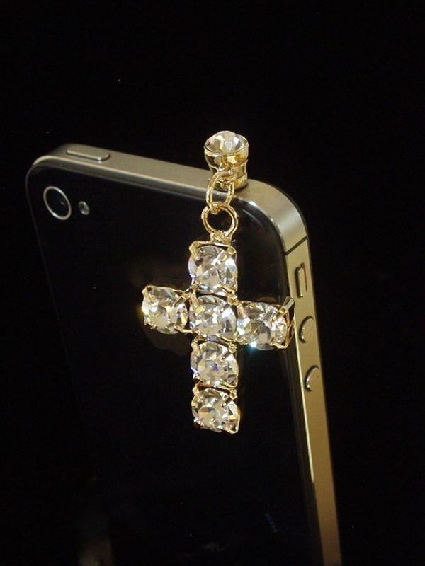 イヤホンジャック ピアス スマホ タブレットアクセサリー 周辺機器 タブレット パソコン スマートフォンピアス ラインストーン ゴージャス クロス イヤホンジャックカバー スマートフォン オーディオプレーヤー アクセサリー 携帯ストラップ 【3011-2995503】