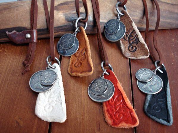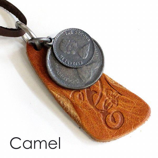 ネックレス ペンダント メンズアクセサリー アクセサリー ファッション トライアングル ドッグタグ Wコイン カーフレザーネックレス 日本製 ウォッシュ加工 珍しい形状 大小コインダブル使い 【3020-1545546】