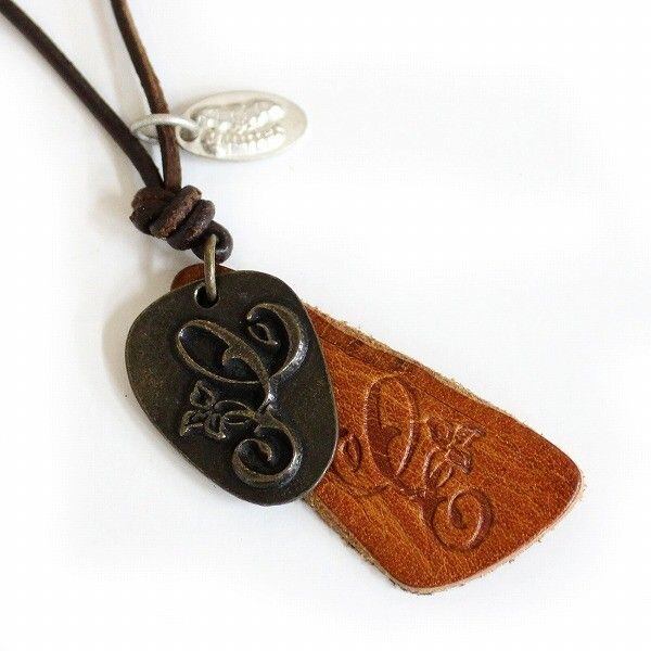 ネックレス ペンダント レディースアクセサリー アクセサリー ファッション アンティーク スタンプ ヴィンテージ加工 レザーネックレス 日本製 made in japan 本皮丸紐ネック レザー 型押しスタンプ イタリアンウォッシュレザー アンティークスタンプ 花文字 アンティーク感 カップル向け ペア 【3020-888923】