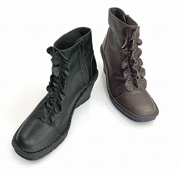 ブーティー ブーツ レディースシューズ レディースファッション 靴 厚底 ウェッジ フリル飾り フリル加工 女性らしさ しっかりした 高さあり 安定感 【3012-6990867】