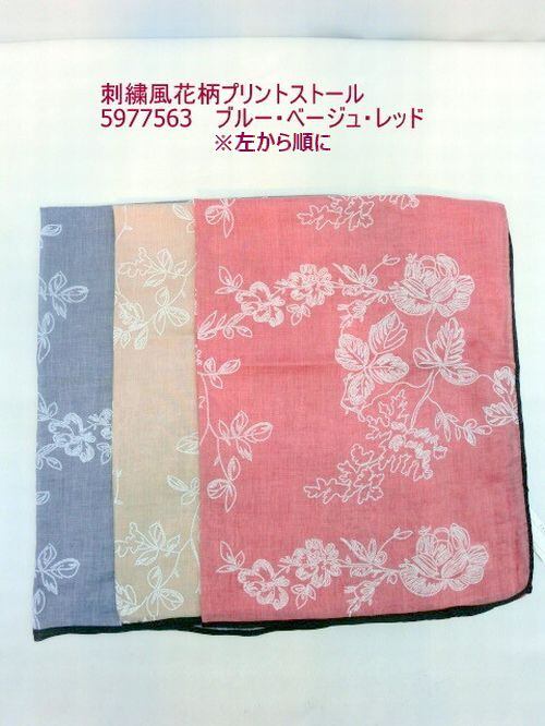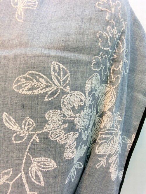 ポリエステル100%の柔らかい生地のビッグストールに、刺繍風の花柄をプリントしました。