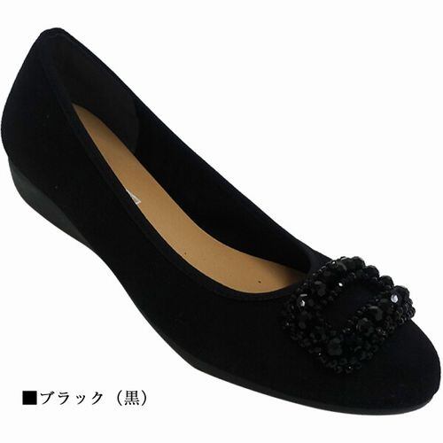 甲の部分にビジューの飾りがついたきちんとした印象のパンプスをモールド底でコンフォートパンプスに。