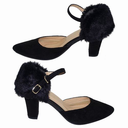 パンプス レディースシューズ レディースファッション 靴 秋冬 ファー付き シンプルパンプス かかと部ファー 上品 可愛らしさ ストラップ付 太めヒール オケージョン バリエーション広がる 【3013-8366073】
