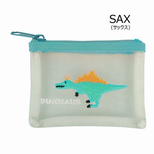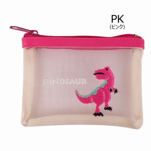 恐竜の刺繍が可愛いメッシュ生地のミニポーチです。