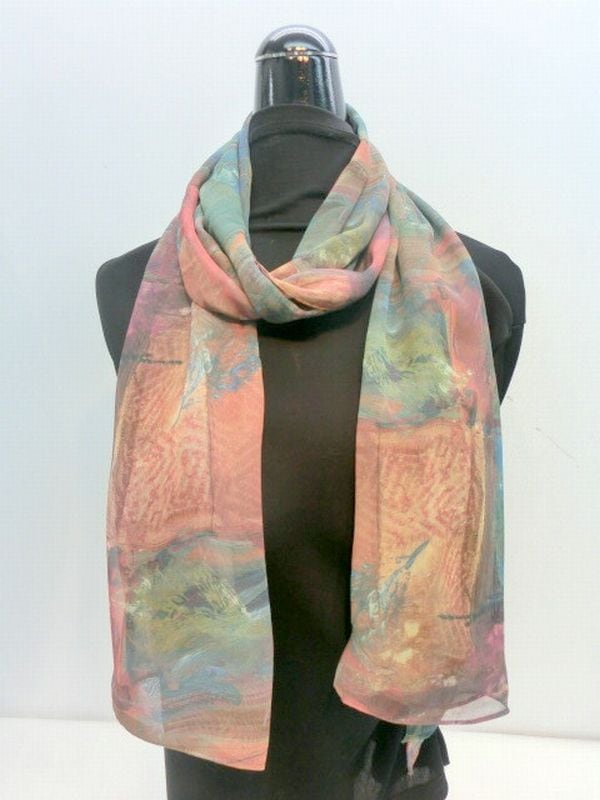 スカーフ ファッション小物 レディースファッション ポリ シフォン プリント 日本製 ロングスカーフ ふんわり しっとり 柔らか 透け感 多色水玉 中水玉 大水玉 油絵柄 転写 巾53cm 長さ145cm 大きい ストール 春夏秋冬のオシャレ 【3001-9070530】