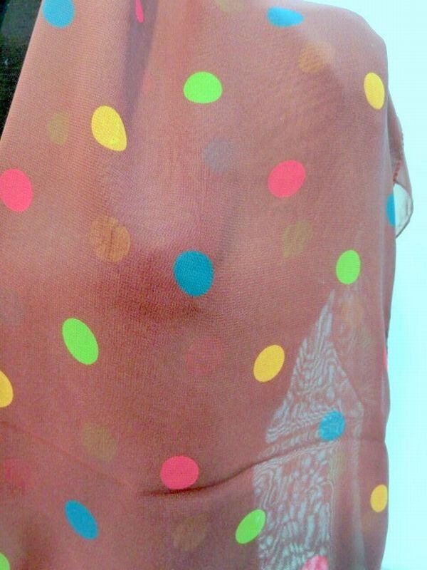 ふんわり・しっとり柔らかな透け感のある日本製のポリエステルシフォン生地に、多色水玉・中水玉・大水玉・油絵柄を転写プリントしました。
