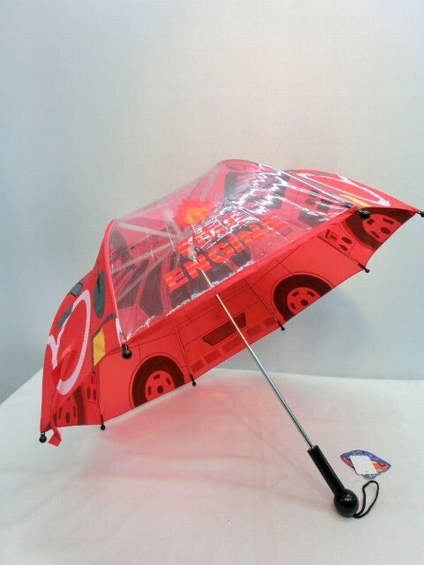子ども傘 子ども用ファッション小物 子ども服 ベビー キッズ マタニティ 長傘 ジュニア 乗物傘 消防車 サウンド ライト付 1駒透明 耳付き 安全ロクロ 手開き傘 キュート 乗り物傘 サイレン鳴る 傘 先端ピカピカ光る 手開き雨傘 透明部分 前が見えて安全 丸線骨 曲がっても折れにくい セミオートロクロ 広げやすくい 指を挟まない 安心仕様 開くと赤色灯が立つ 雨傘 【3001-9356535】