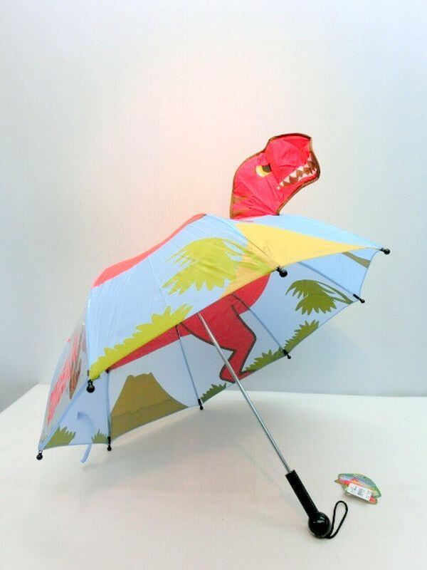開くと赤色の恐竜が立つキュートなジュニア用雨傘です。